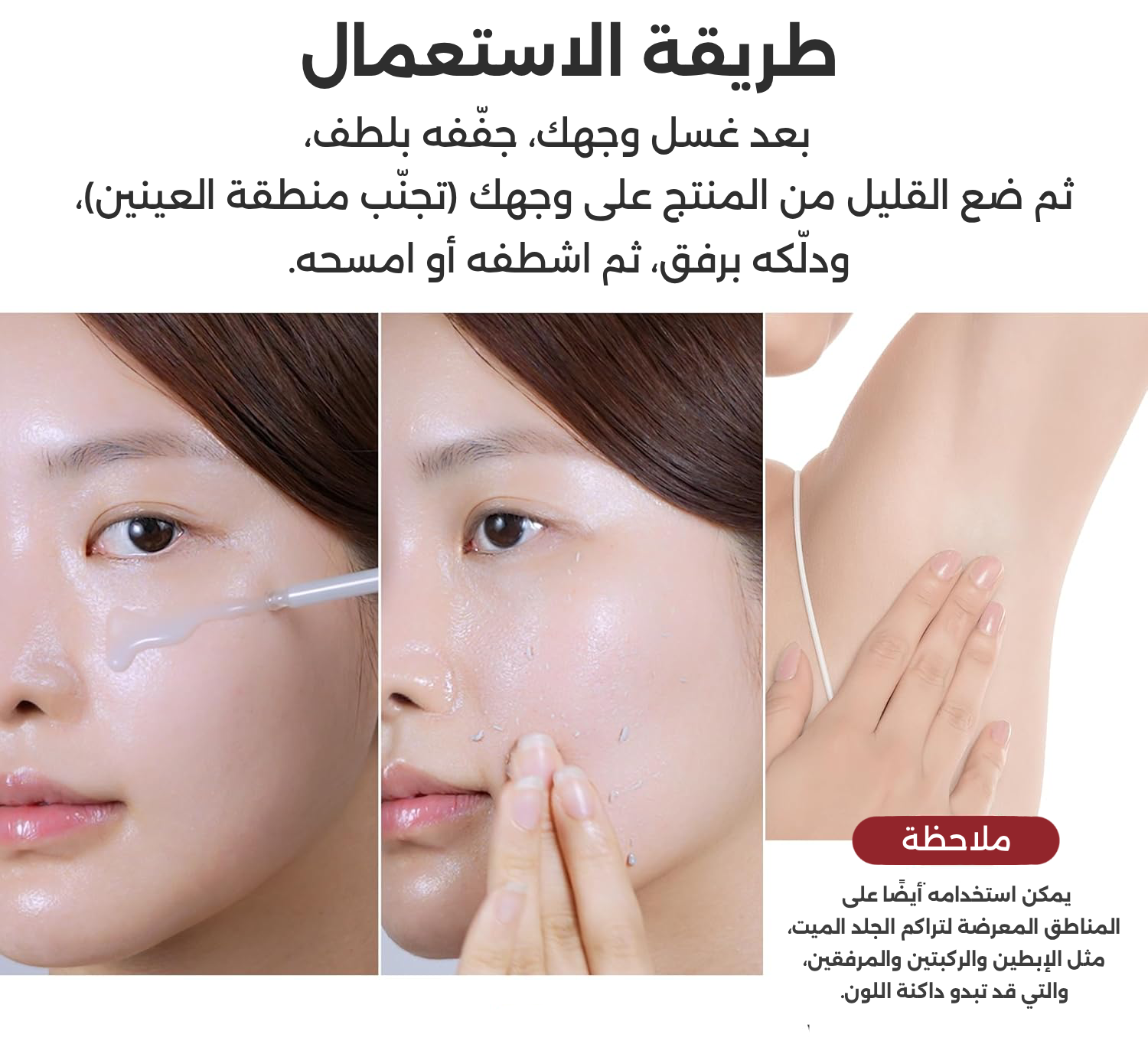ثم ضع القليل من المنتج على وجهك (تجنّب منطقة العينين)، ودلّكه برفق،